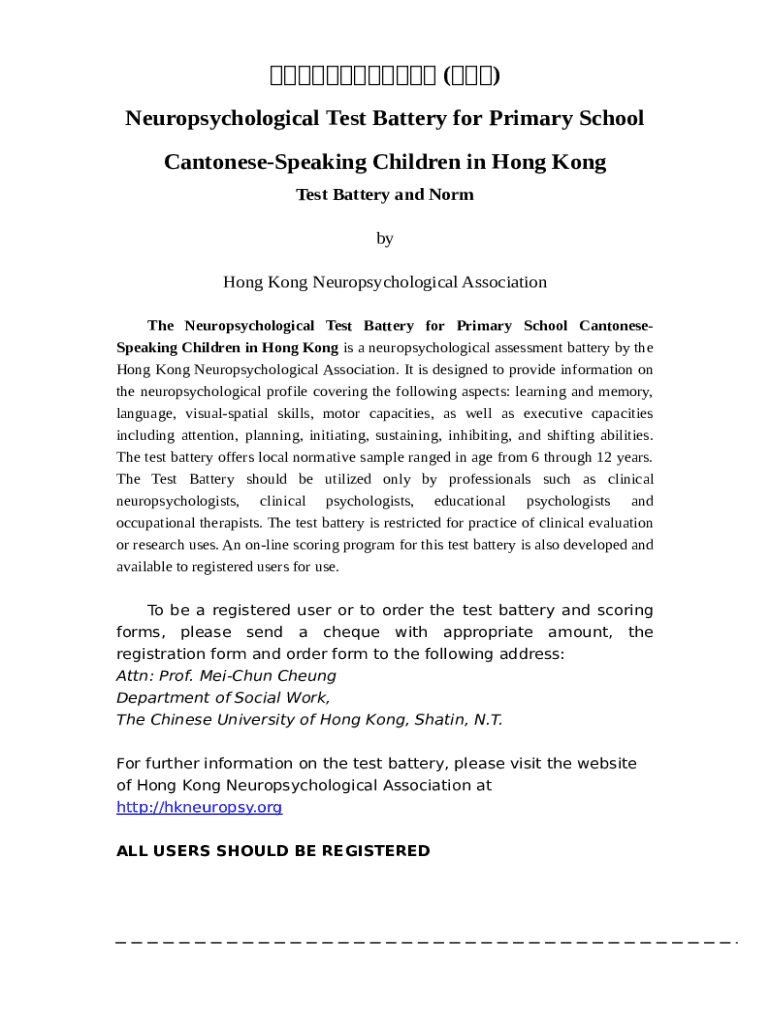 How should you fill out the a test battery for children between 5 and 16 years of age. ... template