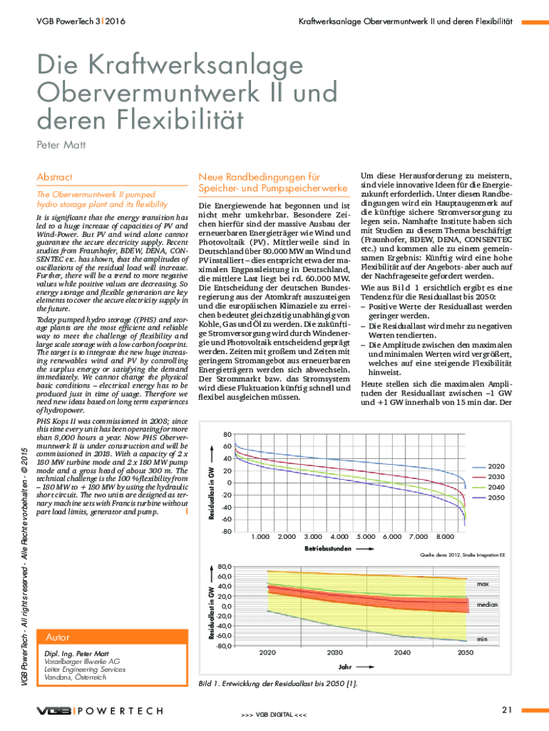 VGB PowerTech3l2016Kraftwerksanlage Obervermuntwerk II und deren FlexibilittDie Kraftwerksanlage Obervermuntwerk II und deren Flexibilitt Peter MattIt is significant that the energy transition has