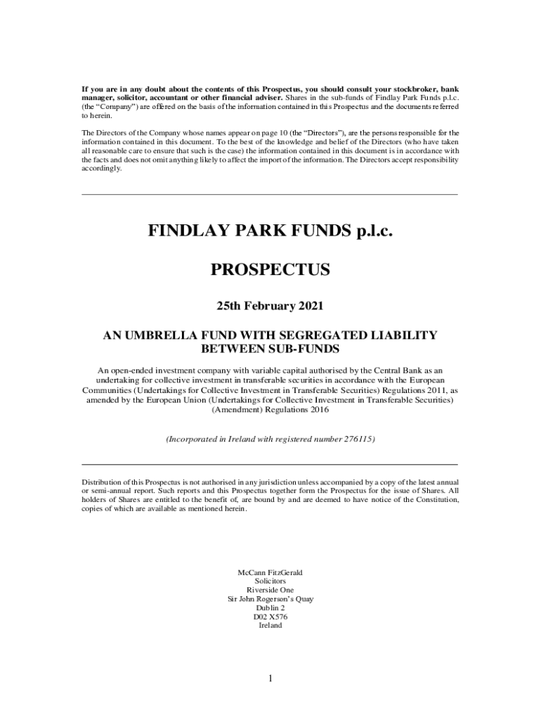If you are in any doubt about the contents of this Prospectus, you should consult your stockbroker, bank manager, solicitor, accountant or other financial adviser. Shares in the subfunds of Findlay