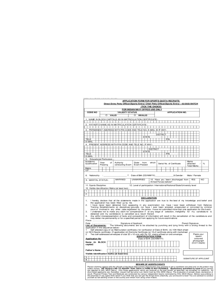 Get the free Navy Sports Quota Vacancy 2023 Application Form