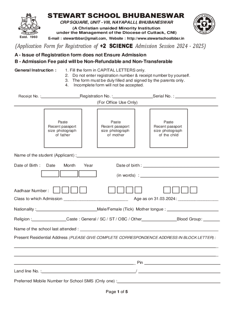 STEWART SCHOOL BHUBANESWAR CRP SQUARE, UNIT VIII, NAYAPALLI, BHUBANESWAREstd. 1960(A Christian unaided Minority Institution under the Management of the Diocese of Cuttack, CNI) Email : stewartbbsr@gmail.com,