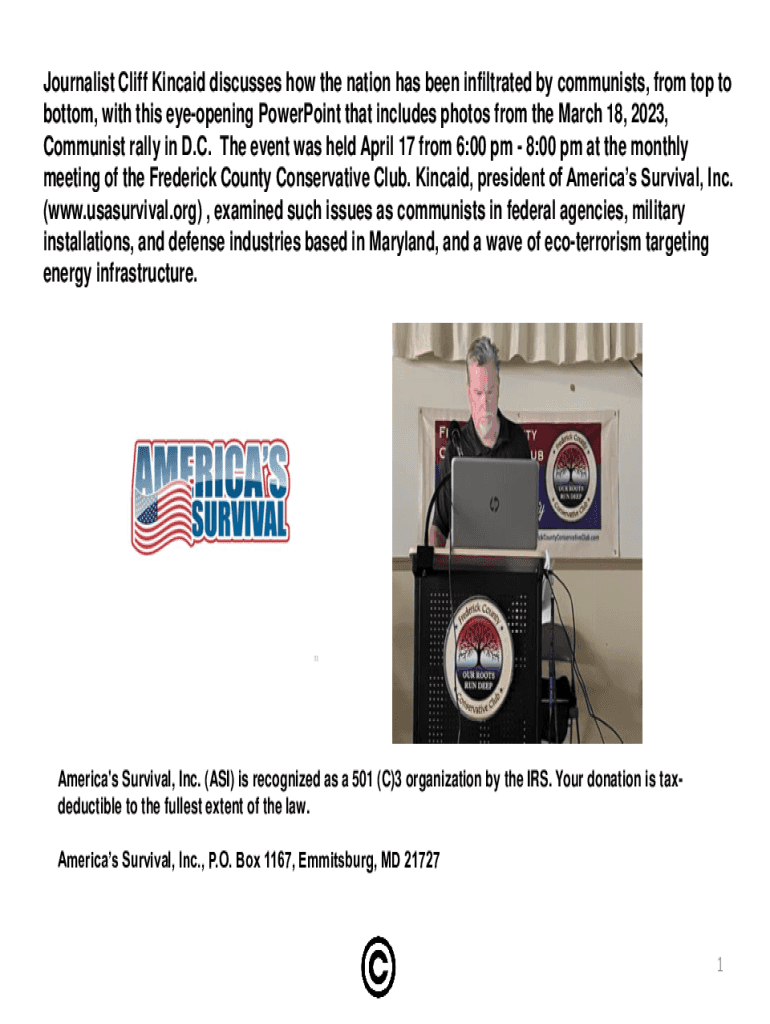 Journalist Cliff Kincaid discusses how the nation has been infiltrated by communists, from top to bottom, with this eyeopening PowerPoint that includes photos from the March 18, 2023, Communist rally