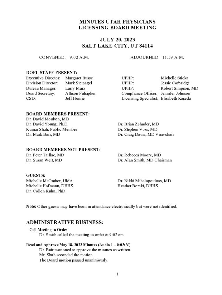 MINUTES UTAH PHYSICIANS