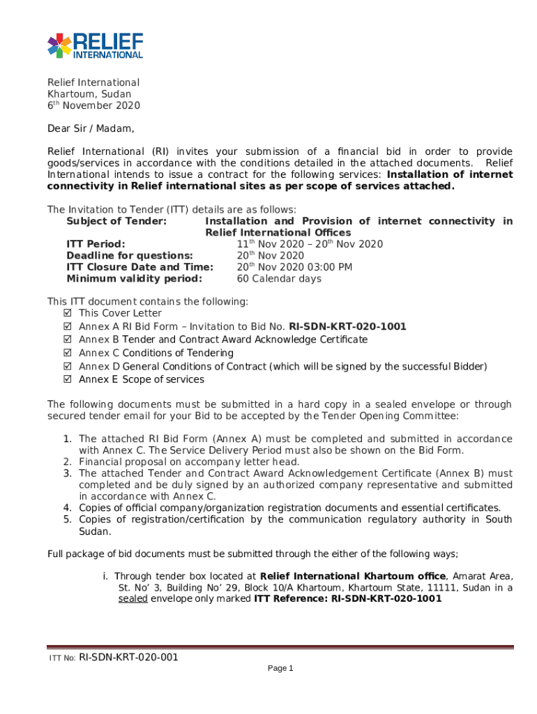 What is ITT-SDN-KRT-020-1001 - Provision of Internet services in ... Form?