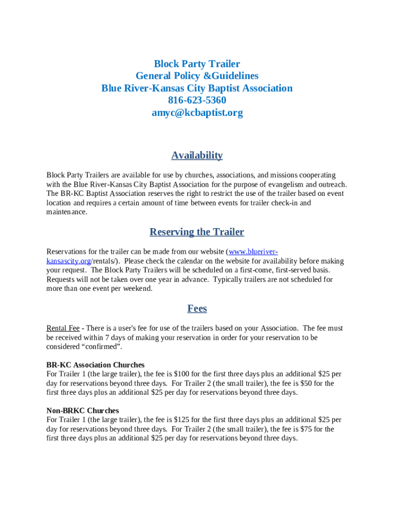 What is Block Party Trailer General Policy & Guidelines ... Form?