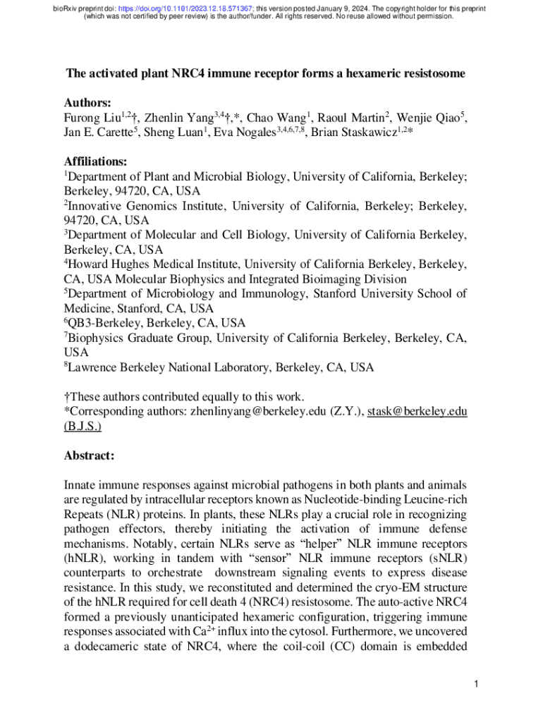 Get the free The activated plant NRC4 immune receptor forms a hexameric resistosome