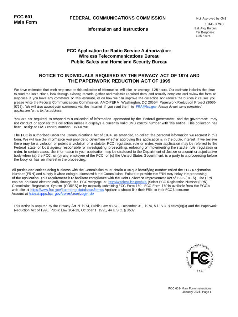 Instructions for the form 601 FCC Application for Radio Service Authorization