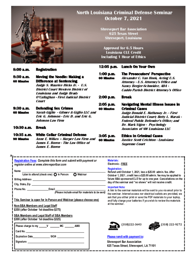 Get the free North Louisiana Criminal Defense Seminar October 7, 2021