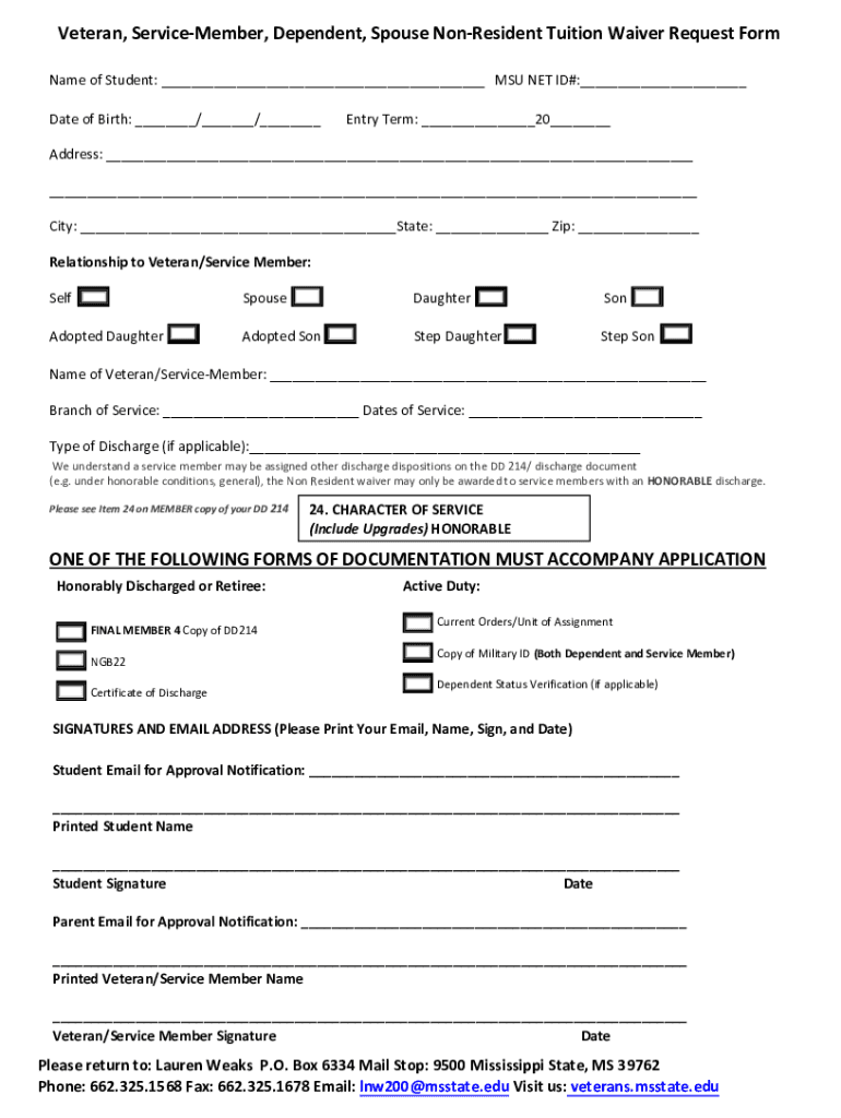 RESET FORMVeteran, ServiceMember, Dependent, Spouse Nonresident Tuition Waiver Request Form