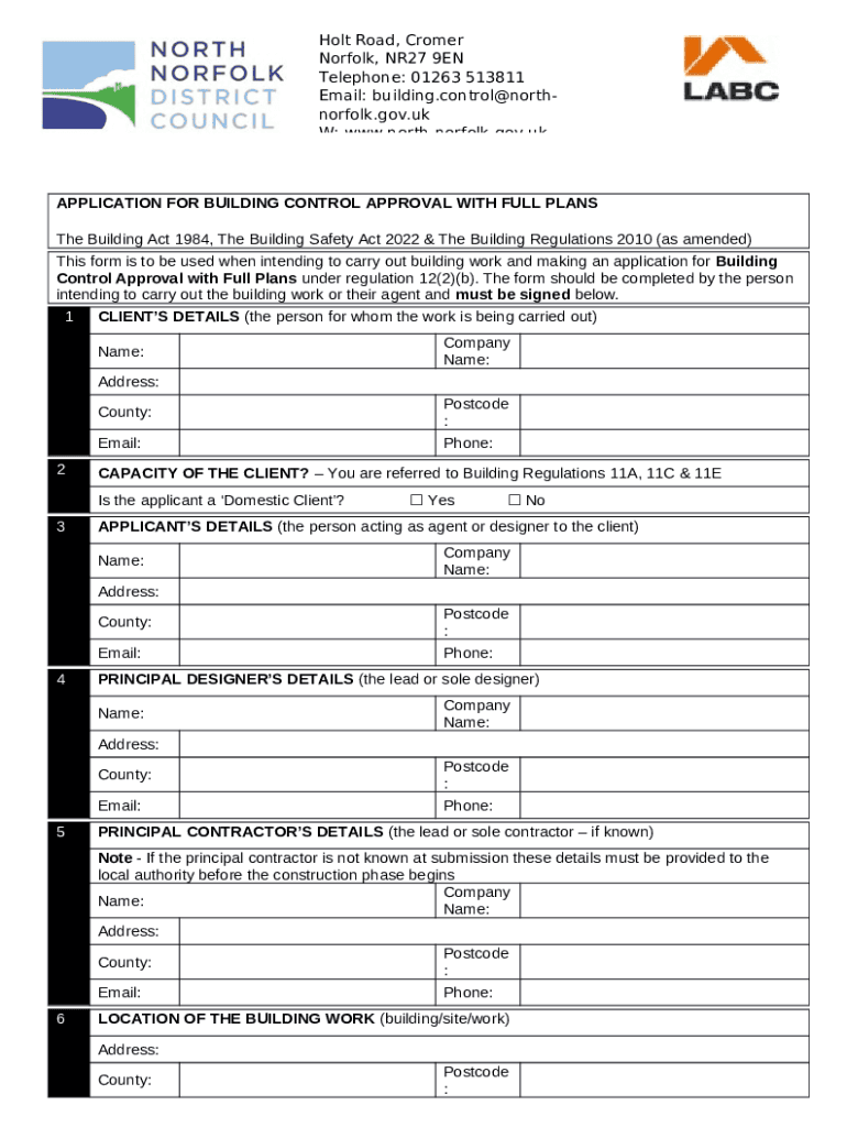 How to fill Application for Building Regulations Approval with Full Plans word template