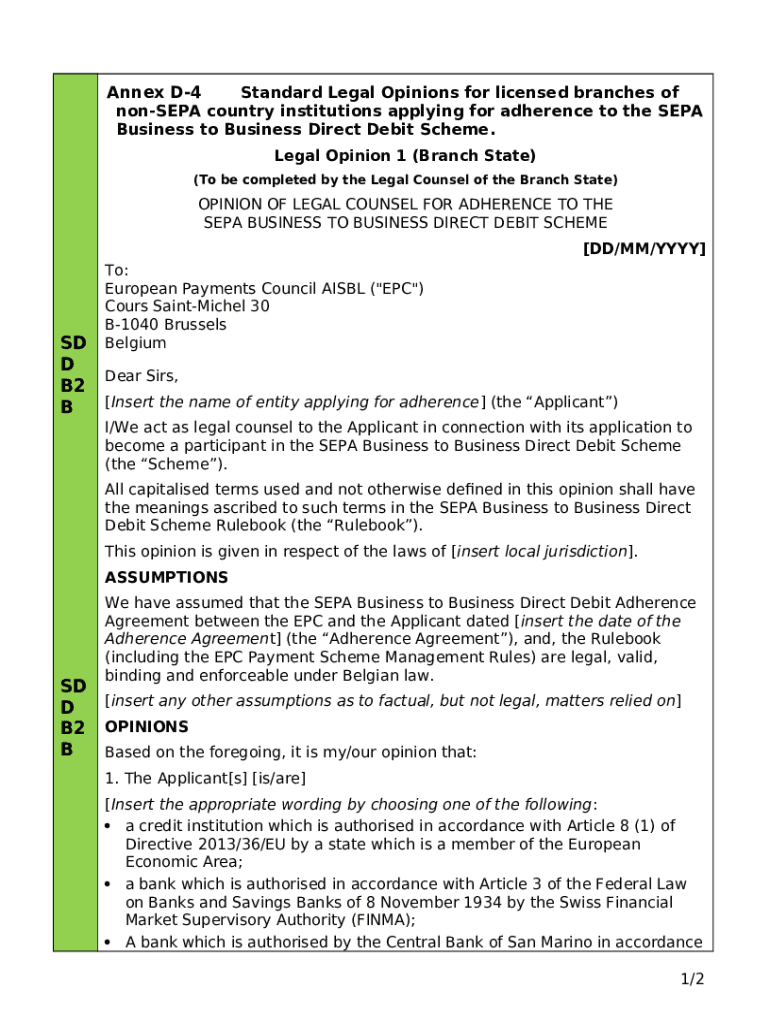 Instructions for the SEPA Business to Business Direct Debit Legal Opinion form