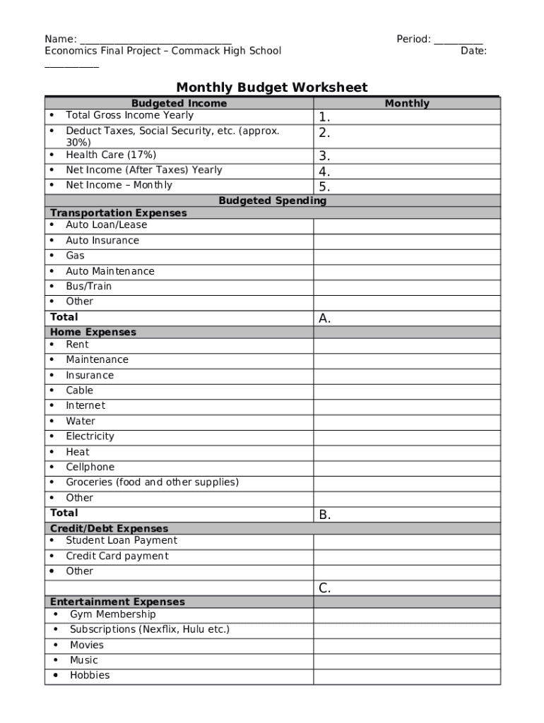 How to fill out Budget Worksheet & Guide to Calculate Your Net