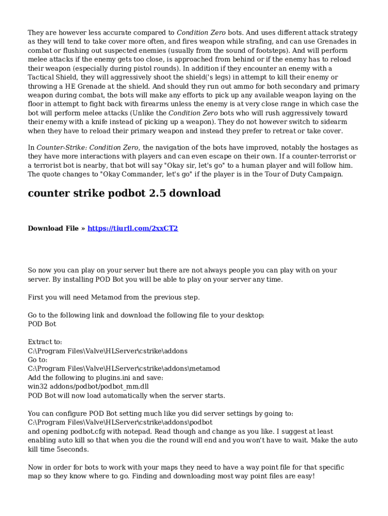 They are however less accurate compared to Condition Zero bots. And uses different attack strategy as they will tend to take cover more often, and fires weapon while strafing, and can use Grenades