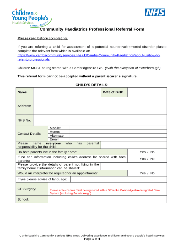 - Find the Community paediatric referral : children under 5 form in PDFfiller’s catalogue.