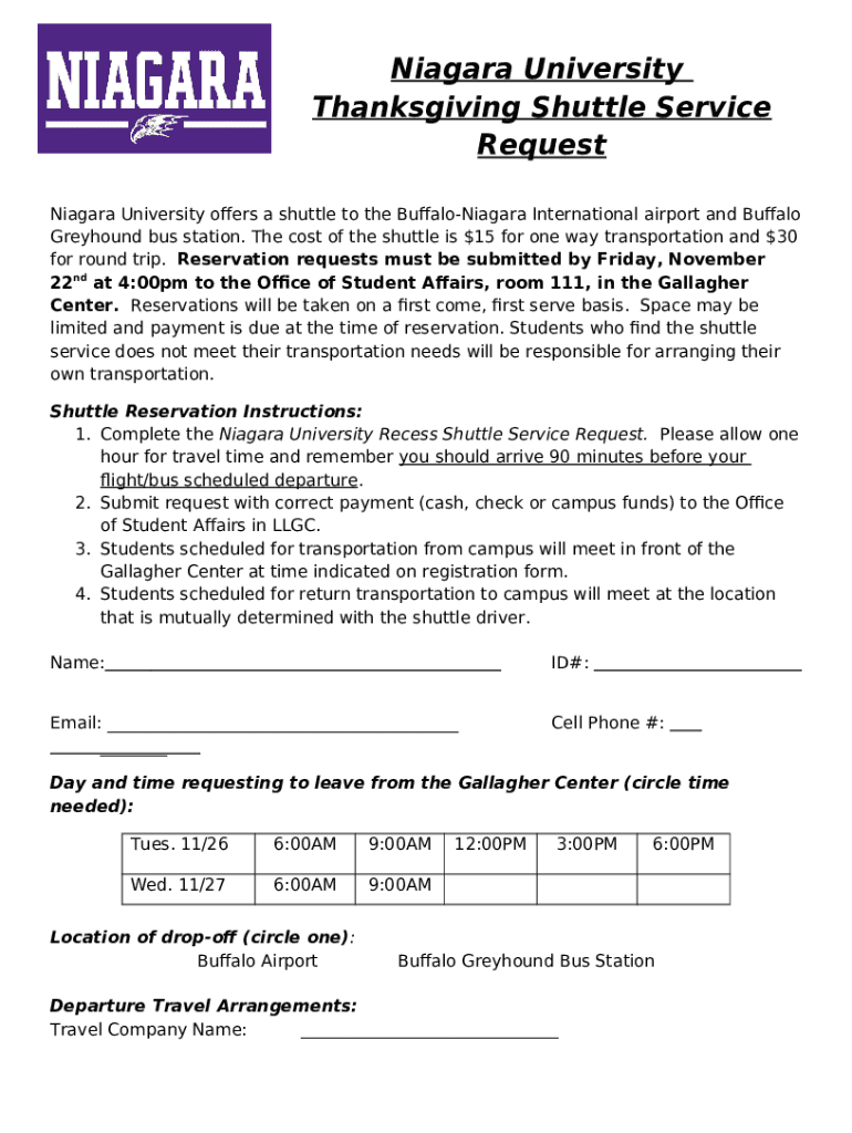 Niagara University Thanksgiving Shuttle Service Request - dailypost niagara word template: frequently asked questions
