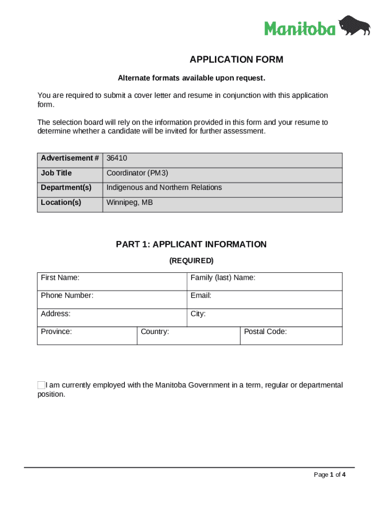 Template You are required to submit a cover letter and resume in conjunction with this application instructions