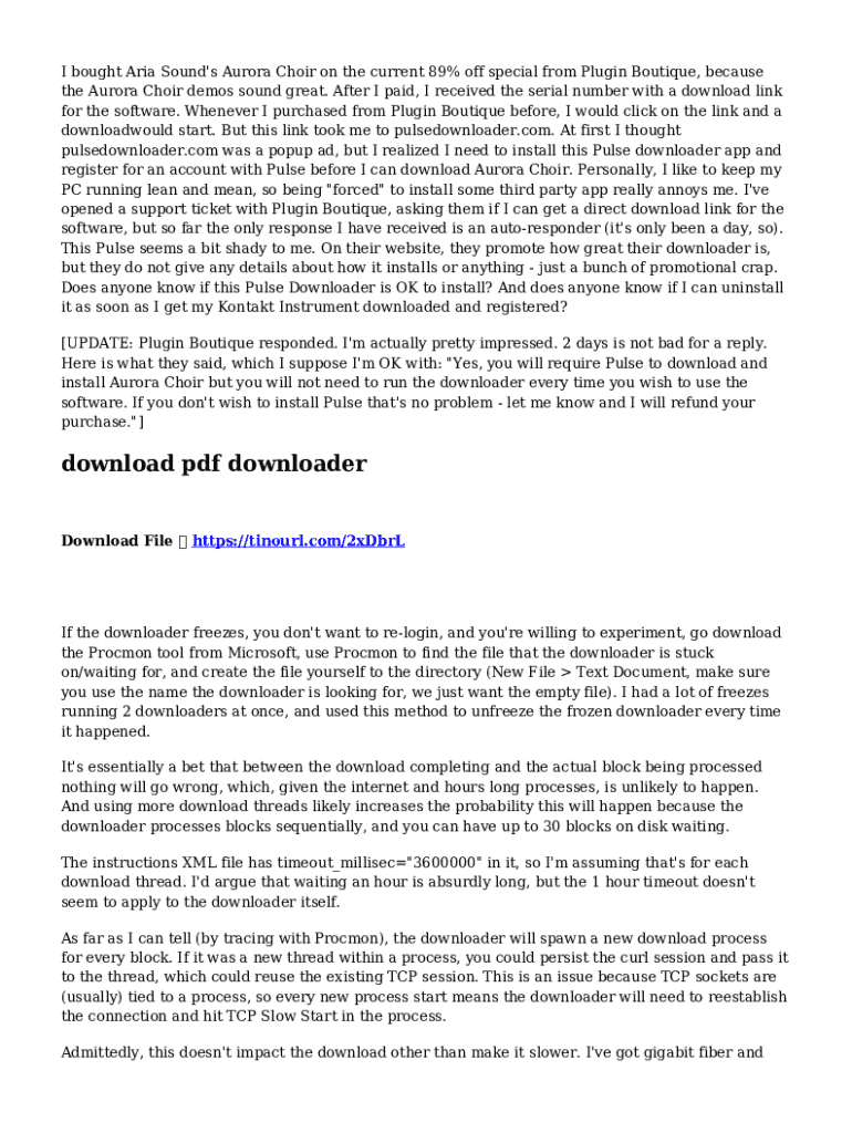 I bought Aria Sound\'s Aurora Choir on the current 89% off special from Plugin Boutique, because the Aurora Choir demos sound great. After I paid, I received the serial number with a download link