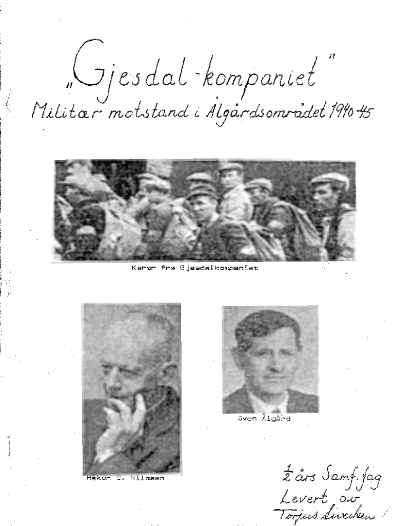 Karer Fra GjesdalkompanietI\'aven lgdHkor.c.NilssenFORDRO Oppgaven om Gjesdalkompaniet og motstanden i og omkring lgrd har jeg laget For kunne bli brukt ved Gjesdal ungdomsskole. Mange av hendelsene