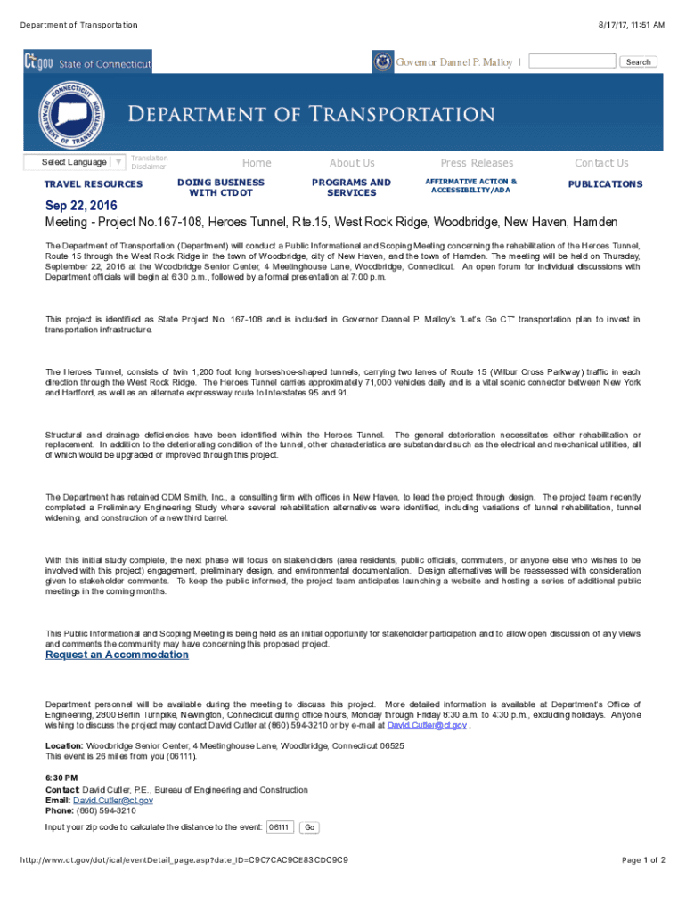Department of Transportation8/17/17, 11\'51 AMGovernor Dannel P. Malloy |Select Language Translation DisclaimerTRAVEL RESOURCESHome DOING BUSINESS WITH CTDOTAbout Us PROGRAMS AND SERVICES Travel ResourcesPress