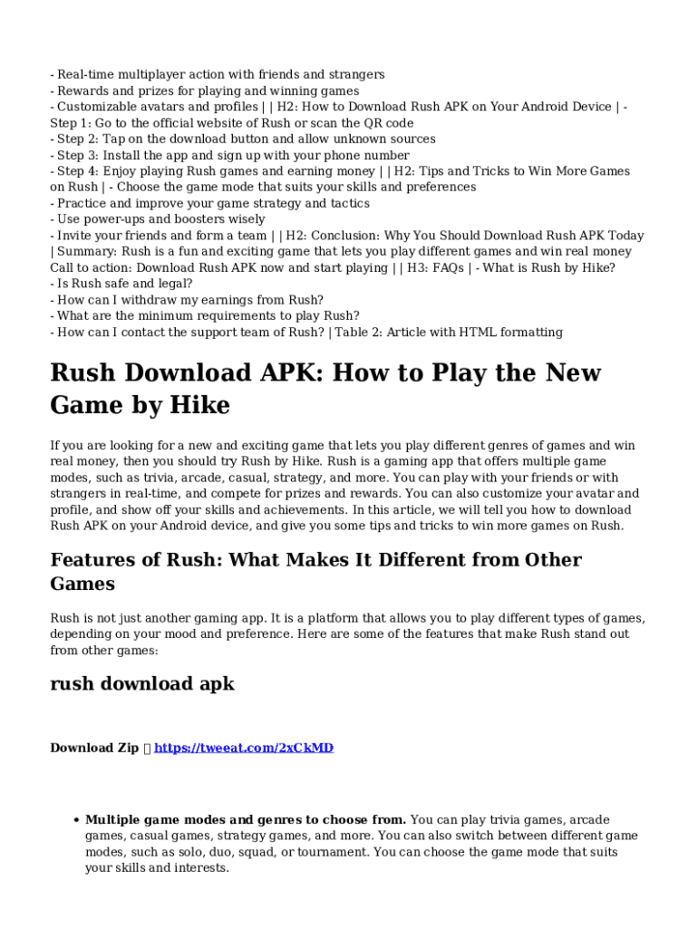 Customizable avatars and profiles | | H₂: How to Download Rush APK on Your Android Device