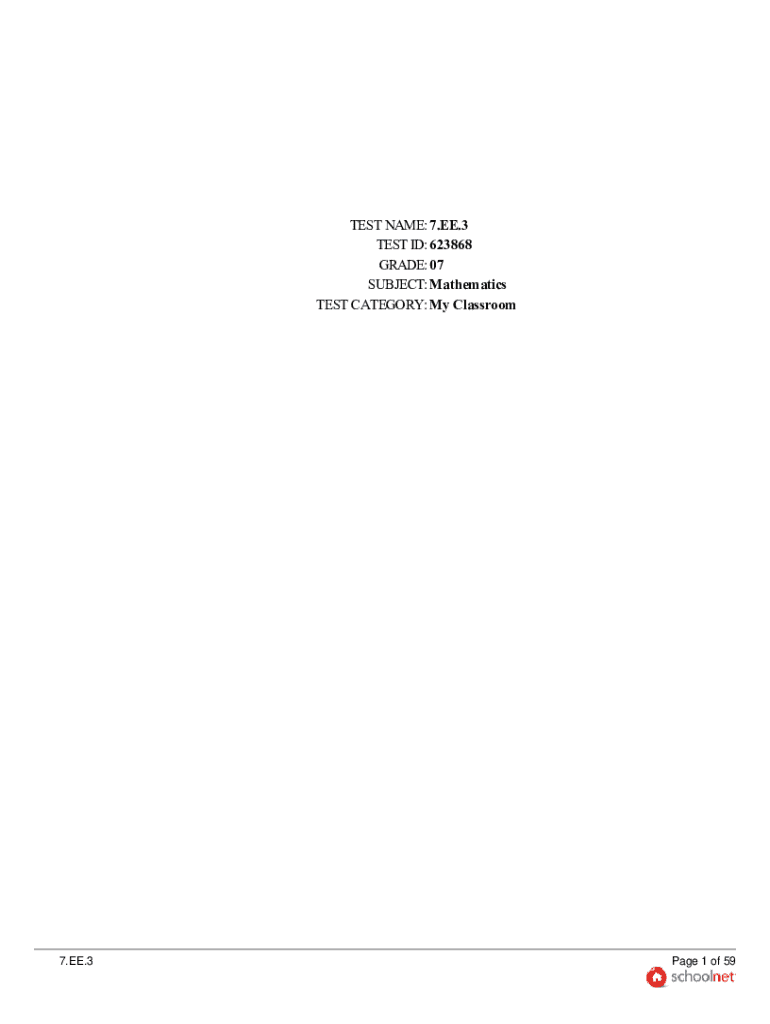 TESTNAME: 7.EE.3 TESTID: 623868 GRADE: 07 SUBJECT: Mathematics TESTCATEGORY: MyClassroom7.EE.3Page 1 of 59Student: Class:Date:1. TheCrystalClearWindowWashingCompanywashed ofahighrisebuildingswindowsonMonday,