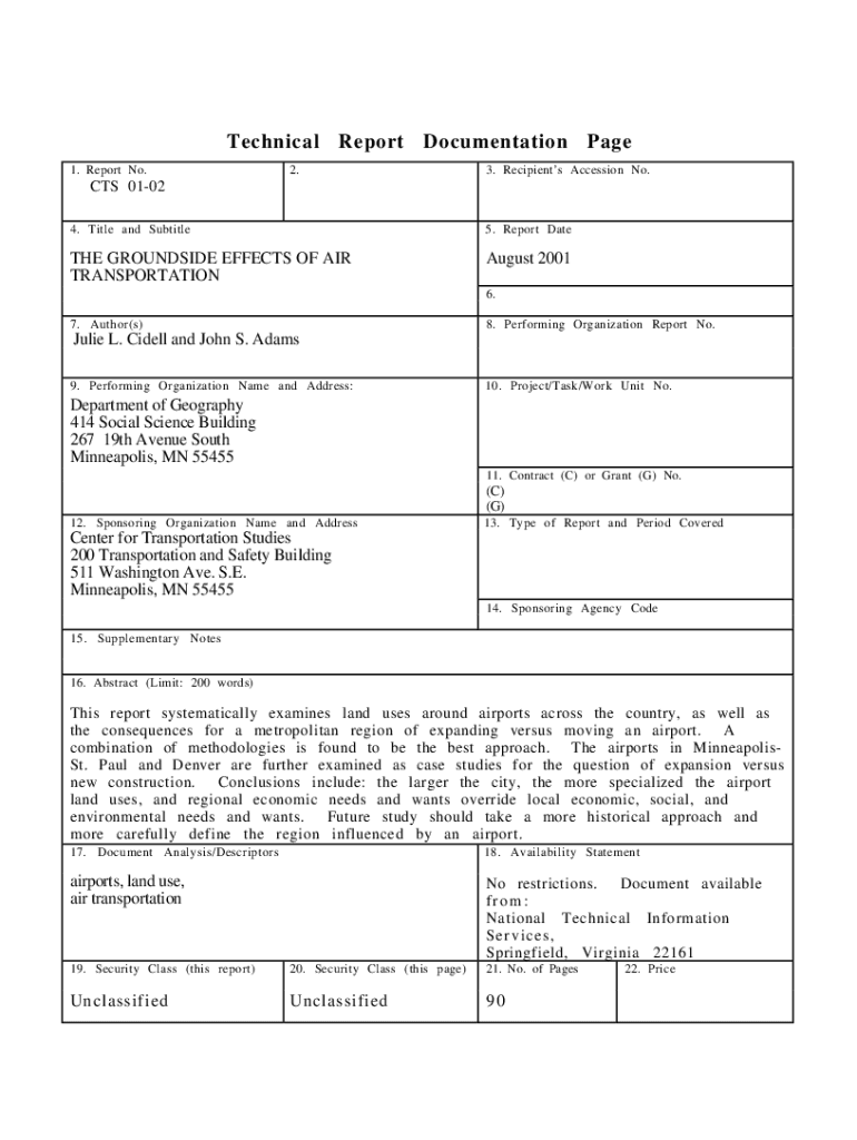 Technical Report Documentation Page 1. Report No.2.3. Recipients Accession No.CTS 0102 4. Title and Subtitle5. Report DateTHE GROUNDSIDE EFFECTS OF AIR TRANSPORTATIONAugust 2001 6.7. Author(s)8. Performing