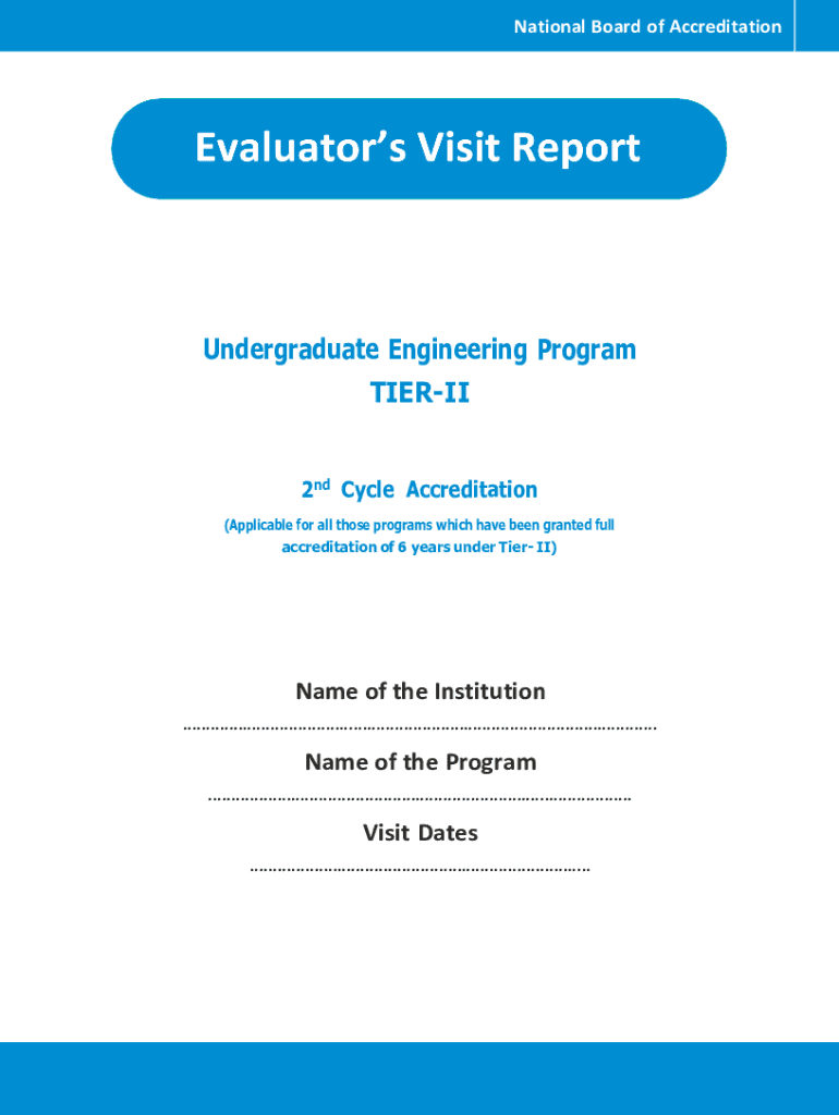 National Board of AccreditationUndergraduate Engineering Program TIERII 2nd Cycle Accreditation (Applicable for all those programs which have been granted full accreditation of 6 years under Tier