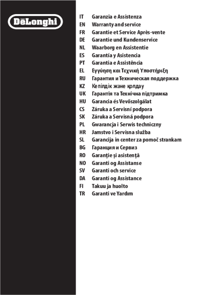 ITENFRDENLESPTELRUKZUKHUCSSKPLHRSLBGRONOSVDAFITRGaranzia e Assistenza Warranty and service Garantie et Service Aprsvente Garantie und Kundenservice Waarborg en Assistentie Garanta y Asistencia Garantia