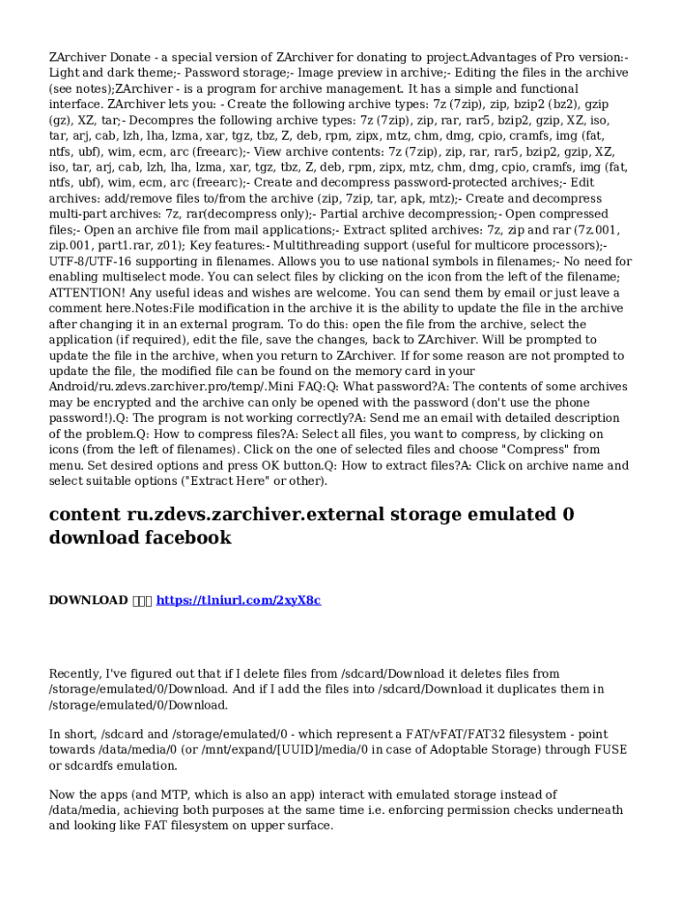ZArchiver Donate a special version of ZArchiver for donating to project.Advantages of Pro version:Light and dark theme; Password storage; Image preview in archive; Editing the files in the archive