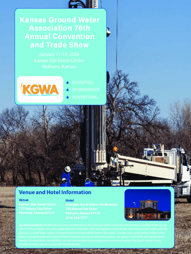 Kansas Ground Water Association 76th Annual Convention and Trade Show January 1719, 2024 Kansas Star Event Center Mulvane, Kansas EXHIBITING SPONSORSHIP ADVERTISINGVenue and Hotel Information Venue