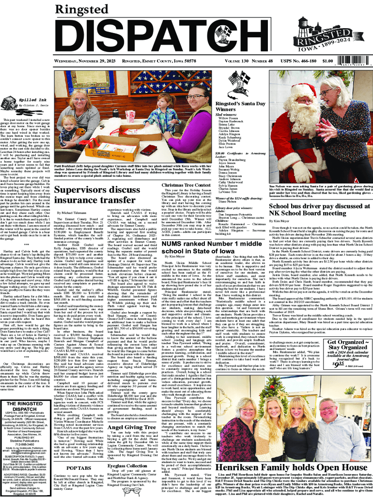 RingstedDISPATCHBATES ELECTRIC James Bates7122091675tjbates@myclearwave.net2035 410th Ave., Estherville, IA 51334Wednesday, October 201412, 2012 VOLUME 121 NUMBER 41 NUMBER Wednesday, July 29,8,2015