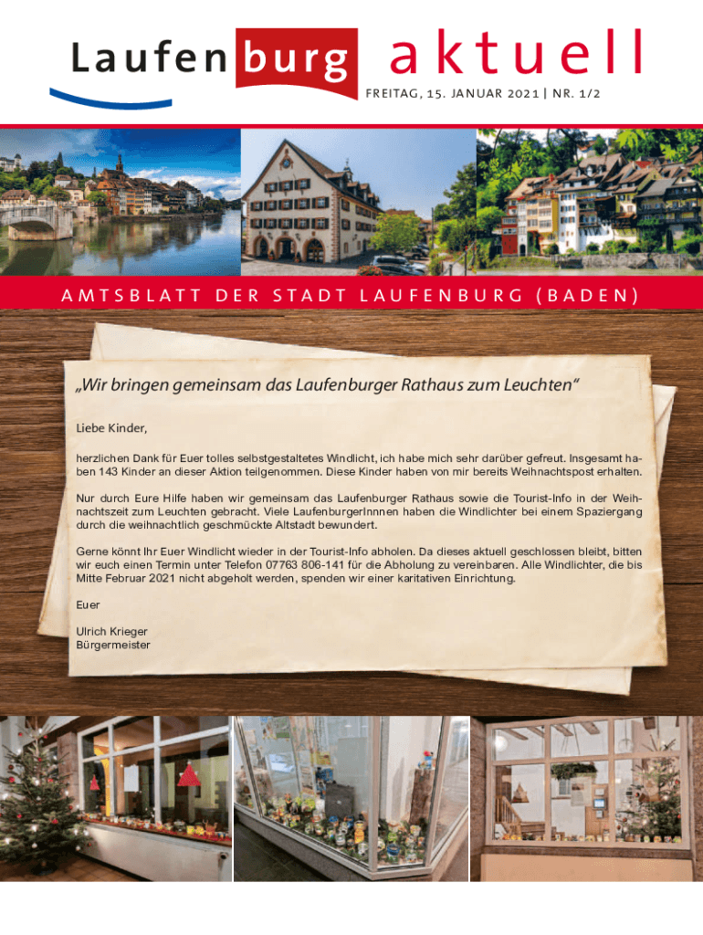 AktuellFR EITAG, 15. JAN UAR 2021 N R. 1/2A MTS B L AT T D E R STA DT L AU F E N B U R G ( B A D E N )Wir bringen gemeinsam das Laufenburger Rathaus zum Leuchten