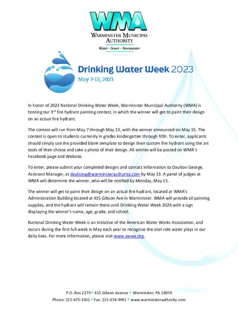 In honor of 2023 National Drinking Water Week, Warminster Municipal Authority (WMA) is hosting our 3rd fire hydrant painting contest, in which the winner will get to paint their design on an actual