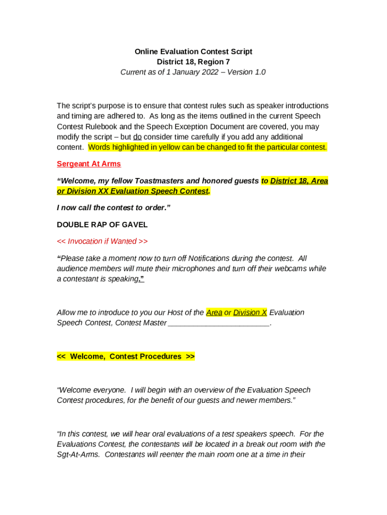 Online International Speech Contestant Briefing Check that as ... template instructions