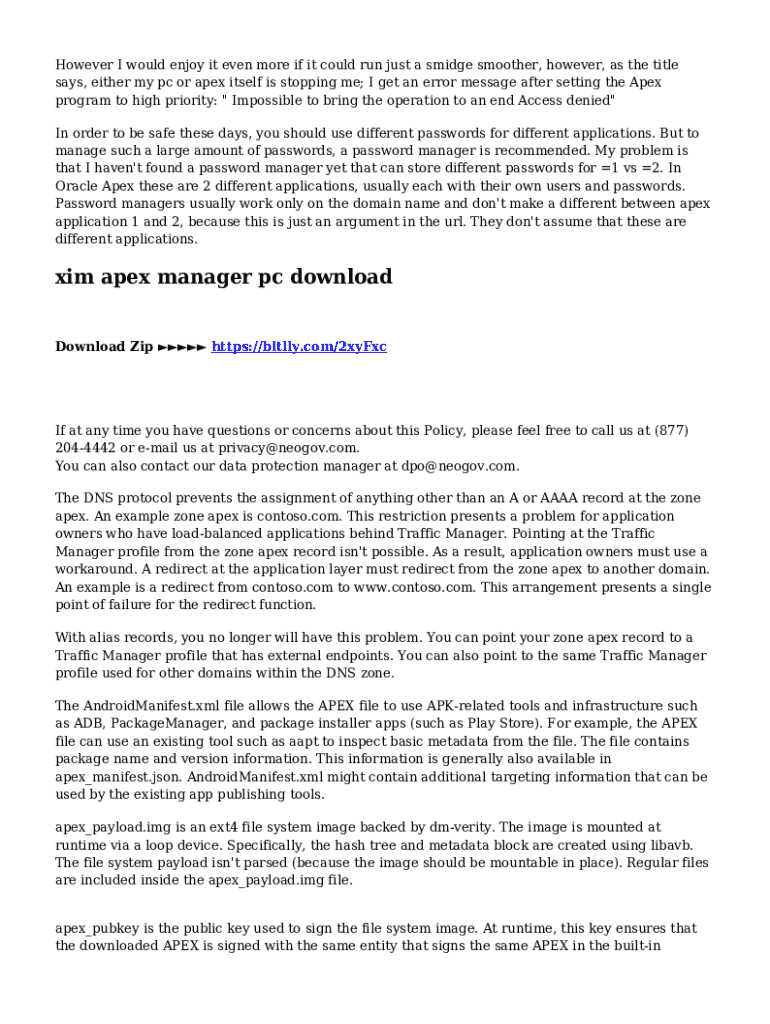 says, either my PC or apex itself is stopping me; I get an error message after setting the Apex