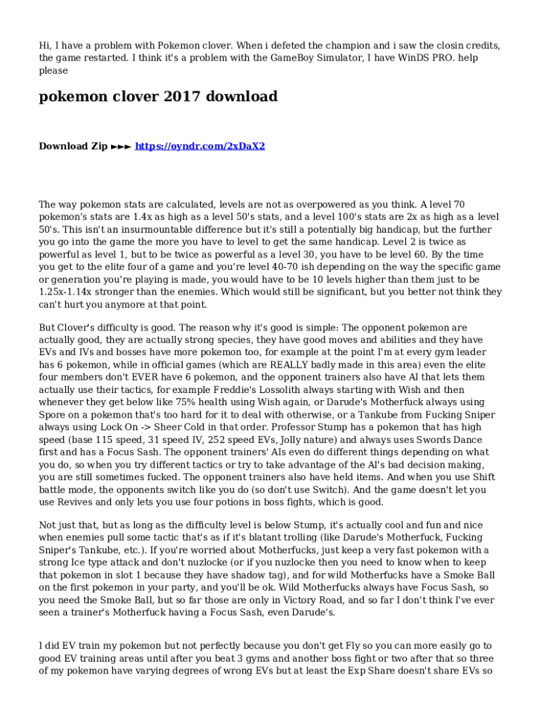 Hi, I have a problem with Pokemon clover. When i defeted the champion and i saw the closin credits, the game restarted. I think it\'s a problem with the GameBoy Simulator, I have WinDS PRO. help pleasepokemon