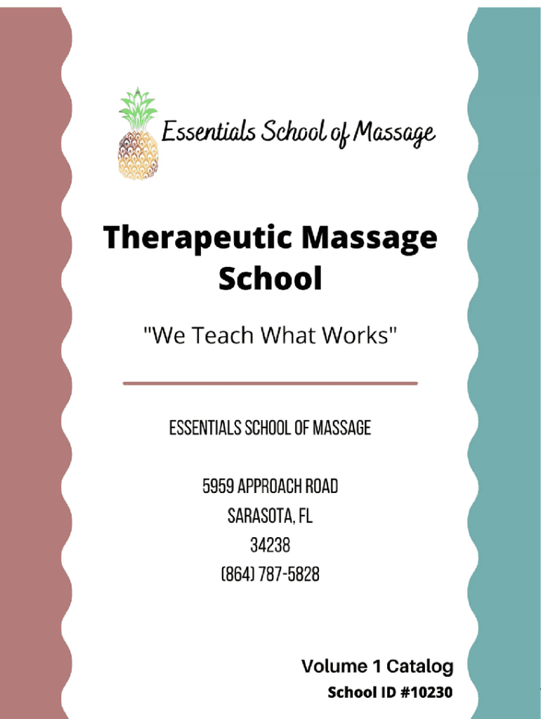 Essentials School of Massage volume 1School ID #10230Table of Contents Vol. 1 (School ID #10230) General Information 1 Mission.. 1 Philosophy and Values1 Purpose and Objectives