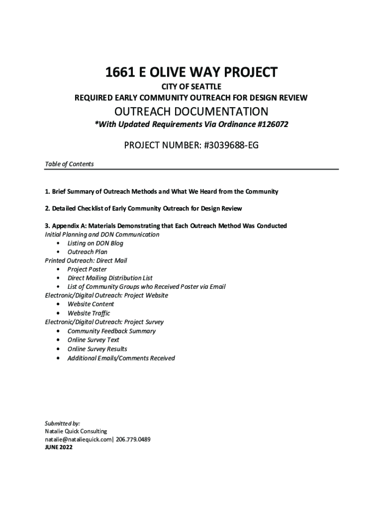 Get the free 1661 e olive way project - outreach documentation
