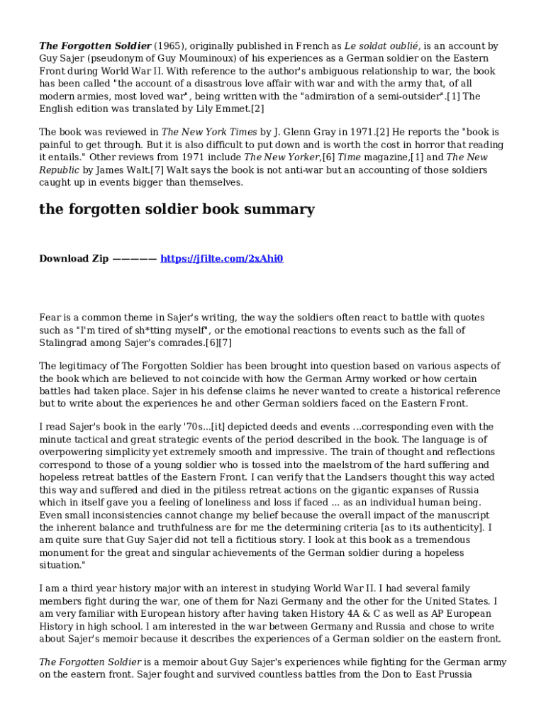 The Forgotten Soldier (1965), originally published in French as Le sold at public, is an account by