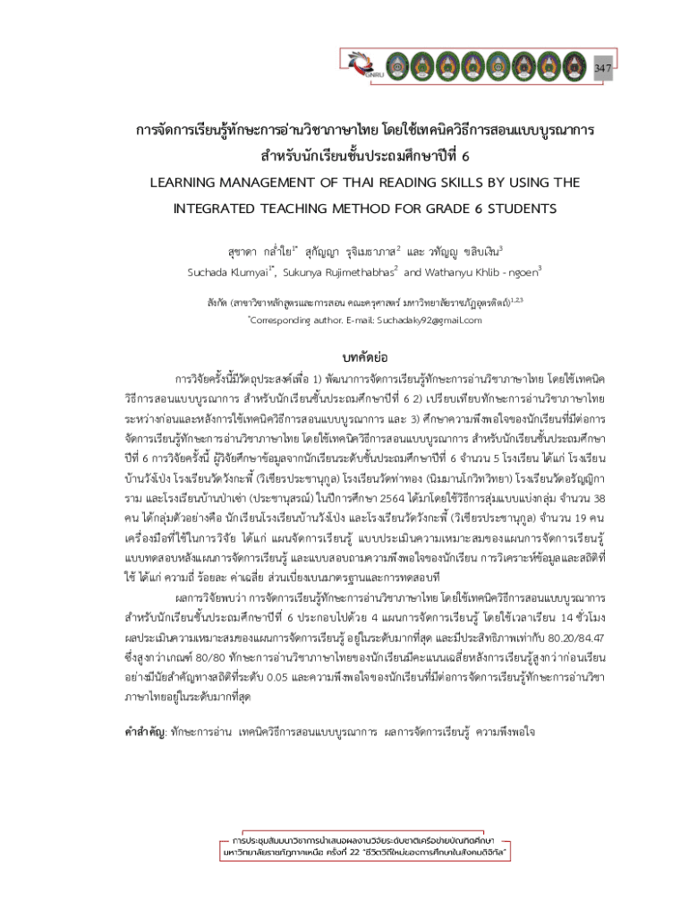 347 6 LEARNING MANAGEMENT OF THAI READING SKILLS BY USING THE INTEGRATED TEACHING METHOD FOR GRADE 6 STUDENTS 1* 2