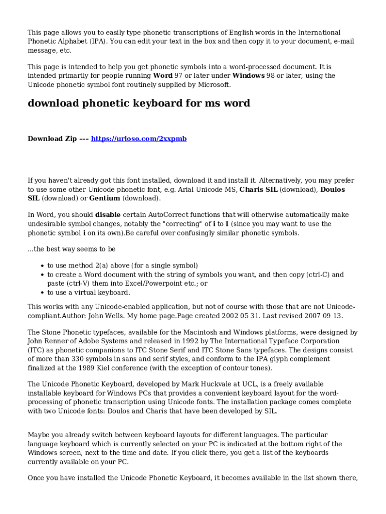 This page allows you to easily type phonetic transcriptions of English words in the International Phonetic Alphabet (IPA). You can edit your text in the box and then copy it to your document, email