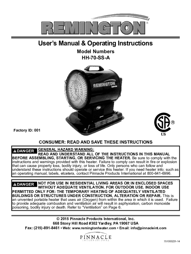 Users Manual & Operating Instructions Model Numbers HH70SSAFactory ID: 001CONSUMER: READ AND SAVE THESE INSTRUCTIONS GENERAL HAZARD WARNING: READ AND UNDERSTAND ALL OF THE INSTRUCTIONS IN THIS MANUAL