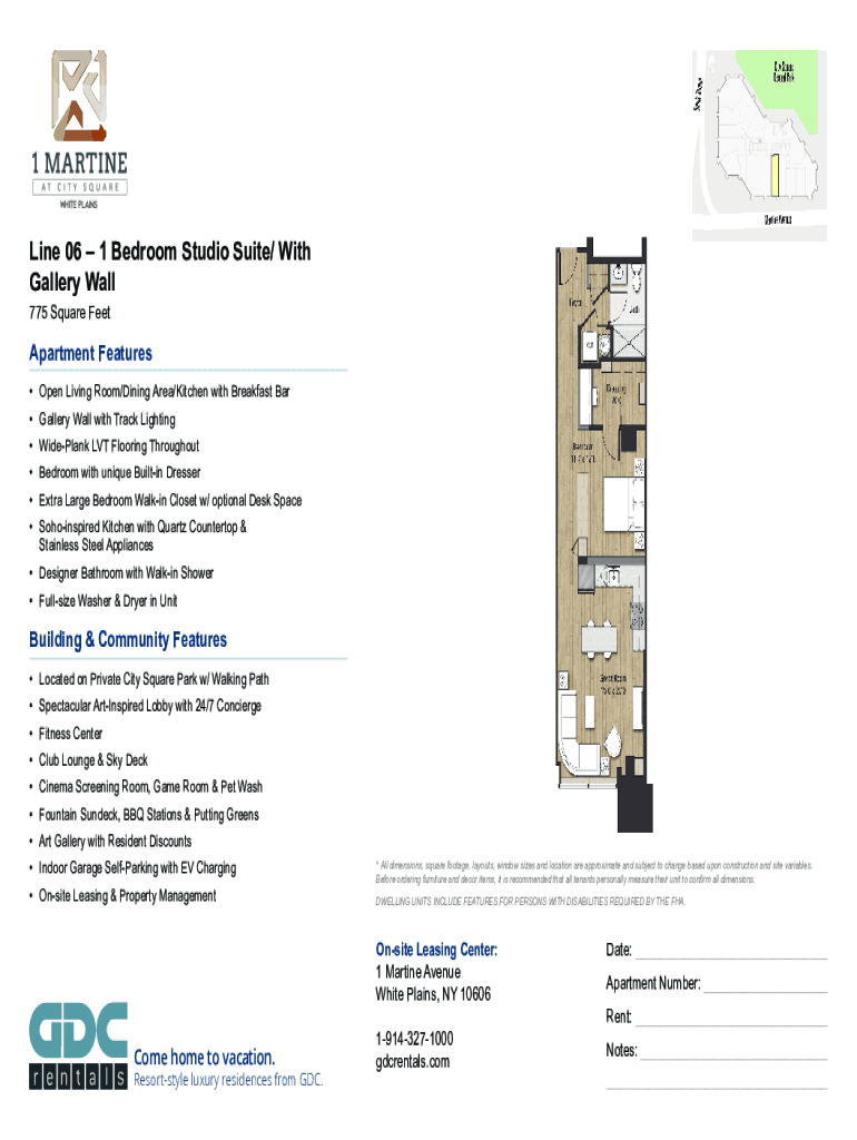 Line 06 1 Bedroom Studio Suite/ With Gallery Wall 775 Square FeetApartment Features Open Living Room/Dining Area/Kitchen with Breakfast Bar Gallery Wall with Track Lighting WidePlank LVT Flooring