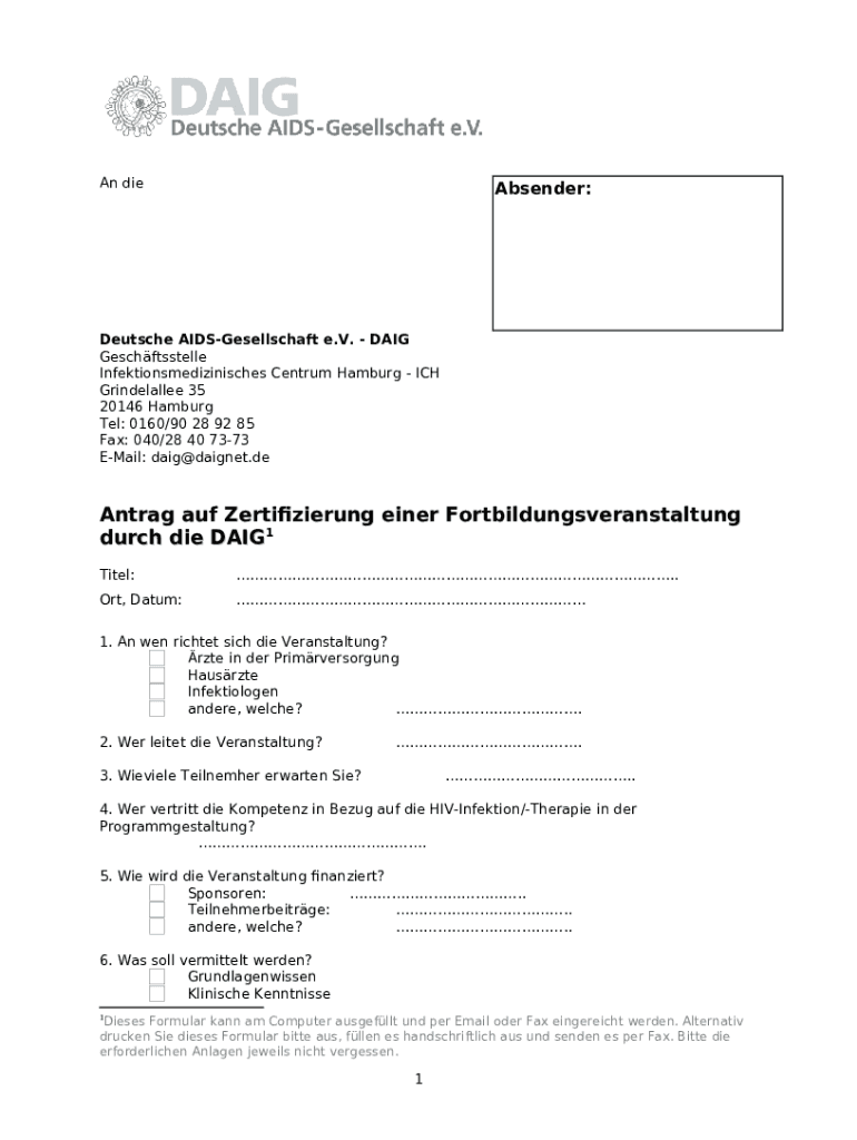 Instructions for the Deutsche AIDS-Gesellschaft e.V. (DAIG) form