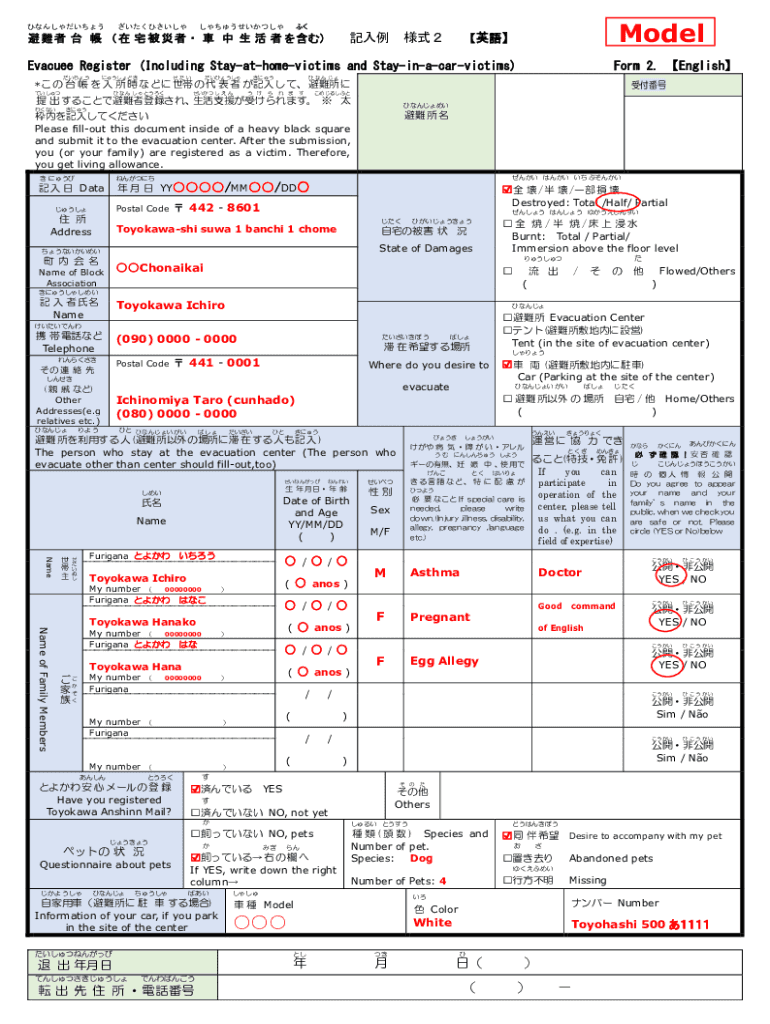 Model Evacuee Register (Including Stayathomevictims and Stayinacarvictims)