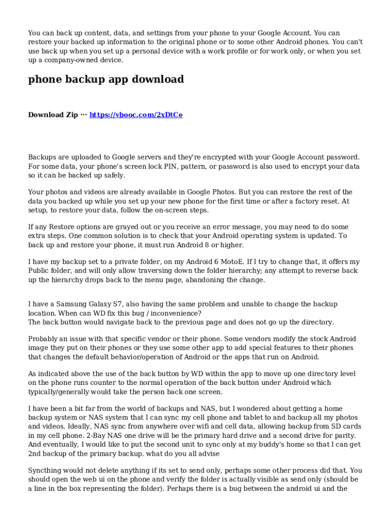 You can back up content, data, and settings from your phone to your Google Account. You can restore your backed up information to the original phone or to some other Android phones. You can\'t use