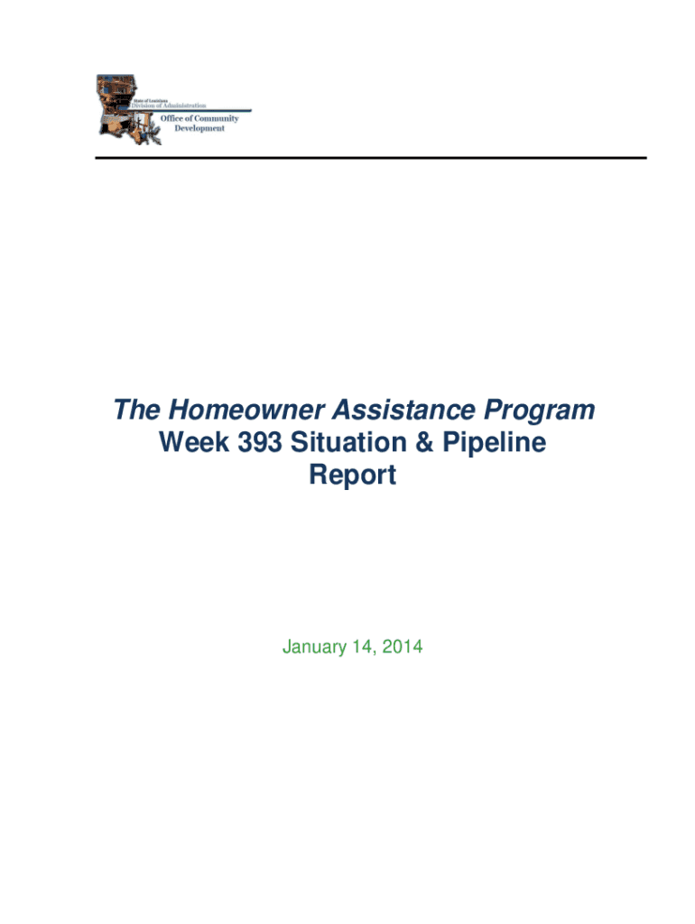 The Homeowner Assistance Program Week 393 Situation & Pipeline ReportJanuary 14, 2014Weekly Situation & Pipeline Report Week 393 Jan 3, 2014 Jan 9, 2014Table of Content EXECUTIVE SUMMARY ...................................................................................................