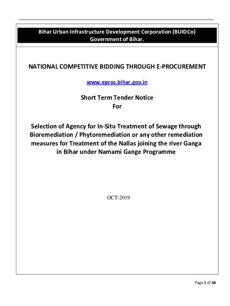 Bihar Urban Infrastructure Development Corporation (BUIDCo) Government of Bihar.NATIONAL COMPETITIVE BIDDING THROUGH EPROCUREMENT www.eproc.bihar.gov.inShort Term Tender Notice For Selection of Agency