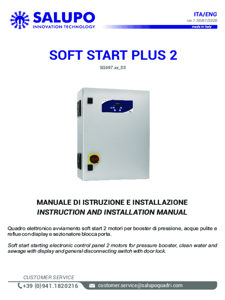 ITA/ENG rev.1 30/07/2020SOFT START PLUS 2 SQ697.xx_SSMANUALE DI ISTRUZIONE E INSTALLAZIONE INSTRUCTION AND INSTALLATION MANUAL Quadro elettronico avviamento soft start 2 motori per booster di pressione,