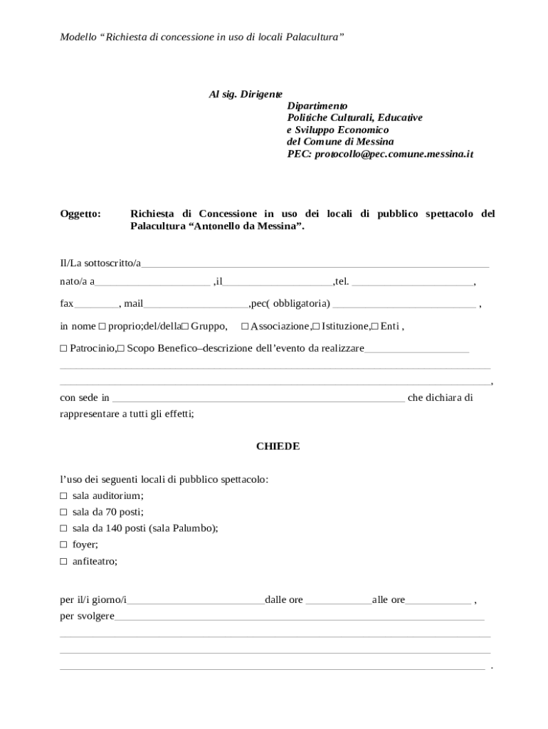 Avviso pubblico per l'assegnazione in concessione d'uso ... template instructions
